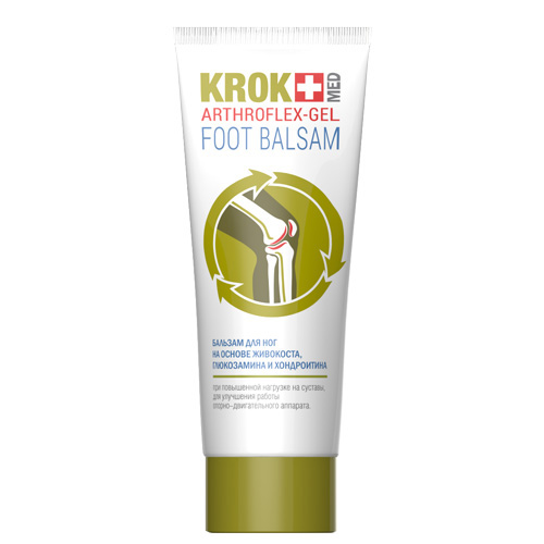 «KROK MED ArthroFlex - гель» – это уникальный бальзам, с высоким содержанием экстракта живокоста 20%, глюкозамином и хондроитином, улучшает подвижность и гибкость суставов, функциональность мышц, стимулирует обменные процессы и нормализует функционирование опорно-двигательной системы. Может использоваться в качестве спортивного массажного геля.
