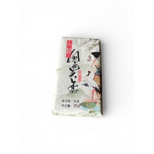 Чай спрессован в компактный диск весом 35 г — удобный формат для знакомства с классическим Шен Пуэром или для подарка ценителю китайского чая.