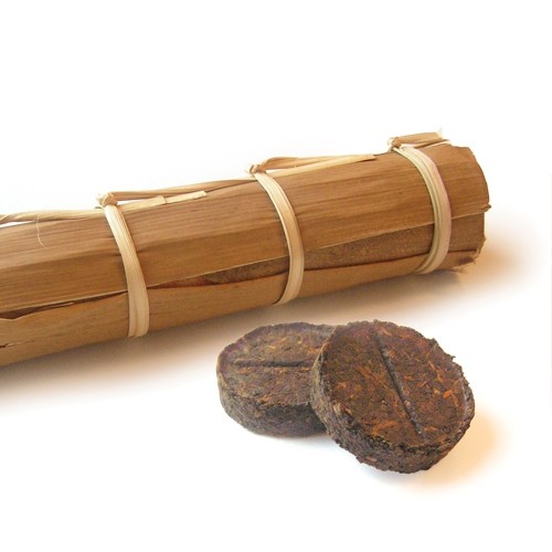 ПуЭр свиток это прессованный выдержанный пуэр в форме медалек которые завернуты в бамбуковое листья. Чай ПуЭр свиток имеет высокое качество и выдержку сырья из которого изготавливается. За время пока ПуЭр свиток выдерживается он приобретает очаровательные ноты, по вкусу напоминающее шоколад с орехом, а листья бамбука придают этому пуэру терпкости. ПуЭр свиток отлично бодрит и тонизирует организм.
