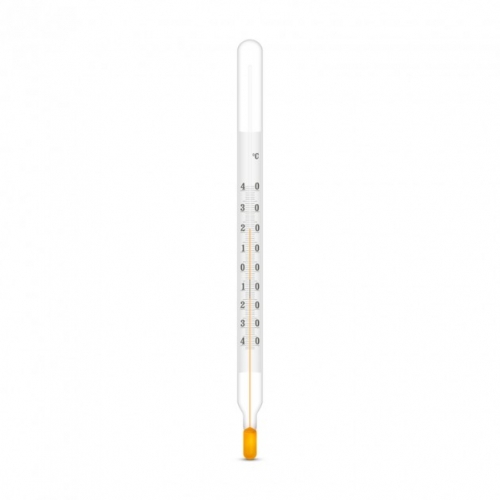 Переверните термометр узкой частью вверх и опустите мениск (штифт) до конца жидкости в термометре.Положить термометр на грунт (горизонтально).