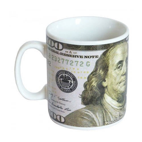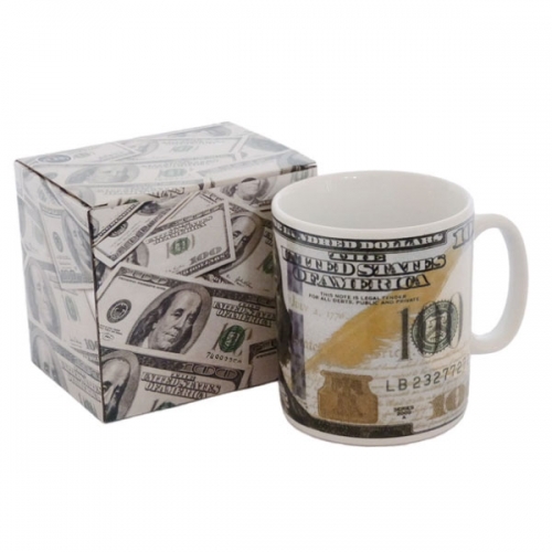 Эта чашка выполнена из высококачественной керамики, которая обеспечивает надежность и долговечность. Рисунок сто долларов, который находится на поверхности чашки, выполнен качественно и не сотрется со временем. Он подарит вам уникальный стиль и добавит немного юмора в вашу жизнь. Чашка имеет прочную ручку, которая обеспечивает удобство в использовании и предотвращает случайное опрокидывание.