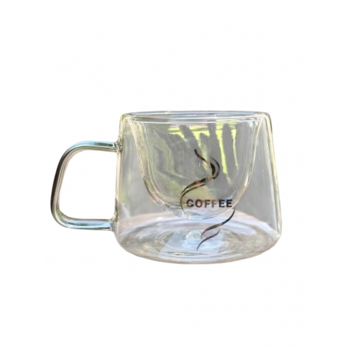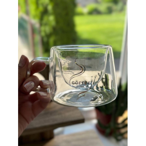 Лаконичный дизайн с надписью COFFEE и легким дымчатым узором придает кружке современный вид. Прозрачное стекло подчеркивает цвет и текстуру напитка, а прочная стеклянная ручка обеспечивает удобный хват при использовании.