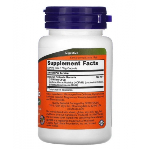 Пробиотик для поддержки дыхательной системы от NOW® представляет собой комбинацию пробиотиков с участием лактобактерий L. acidophilus NCFM®, которая использовалась в более чем 60 научных исследованиях. Проверяли эффективность действия NCFM® отдельно или в сочетании с бифидобактериями B. lactis BI-04. В обоих случаях была продемонстрирована способность поддерживать активный образ жизни и устойчивый иммунный ответ на сезонные респираторные заболевания. Действие NCFM® состоит в быстром заселении кишечника бактериями, которые крепятся к его стенкам. Использование препарата особенно эффективно во время и после временных нарушений микрофлоры кишечника.