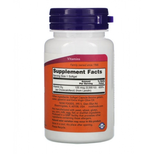 Витамин D-3 в мягких таблетках от NOW содержит этот важнейший витамин в легко усвояемой жидкой форме. Обычно витамин D попадает в организм из еды, либо вырабатывается кожей под воздействием солнечных лучей. Однако в еде он содержится в недостаточном количестве. Поскольку многие люди стремятся избегать воздействия солнца, то дополнительный прием витамина D становится все более необходимым для организма.