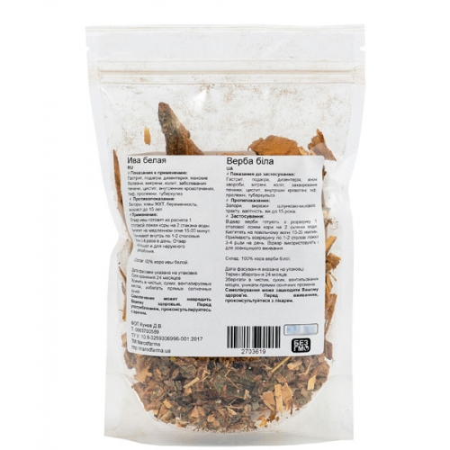 Ива белая фасована согласно ТУ У: 10.8-3259306996-001:2017. Сертификат МОЗ на иву белую находиться на следующей вкладке.